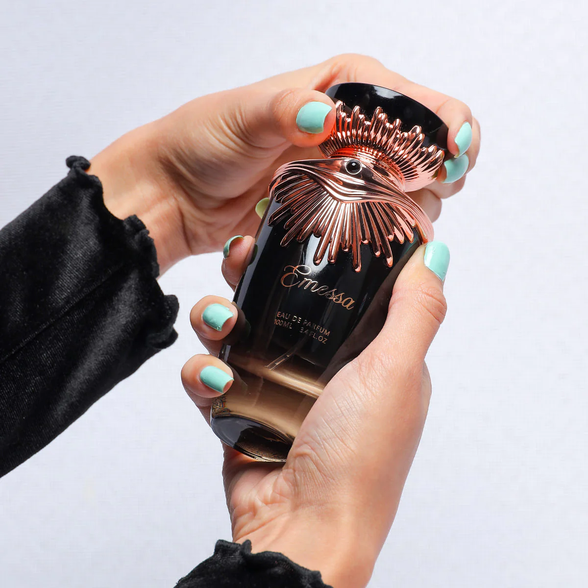 Emessa is a seductive, bold and refined fragrance that opens with a bright Bergamot complemented with Spicy notes. The middle notes combine an intoxicating Rose with Woody accords, smoothly blended with precious Amber and Balsamic notes adding Warmth and elegance.