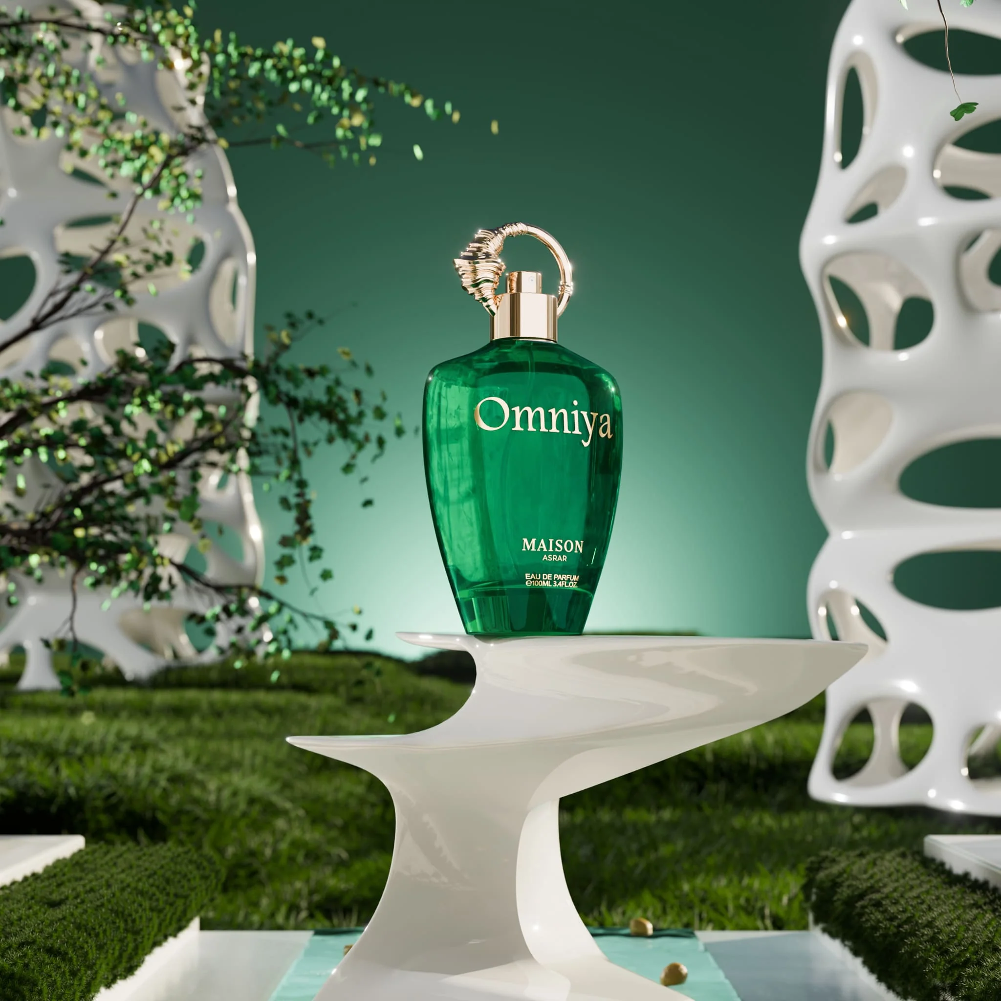 Omniya" (wish in Arabic) manifests the essence of longing with a lively mix of citrus and ozonic freshness, a floral heart, and a profound base of musk and leather, embodying the pursuit of dreams.
